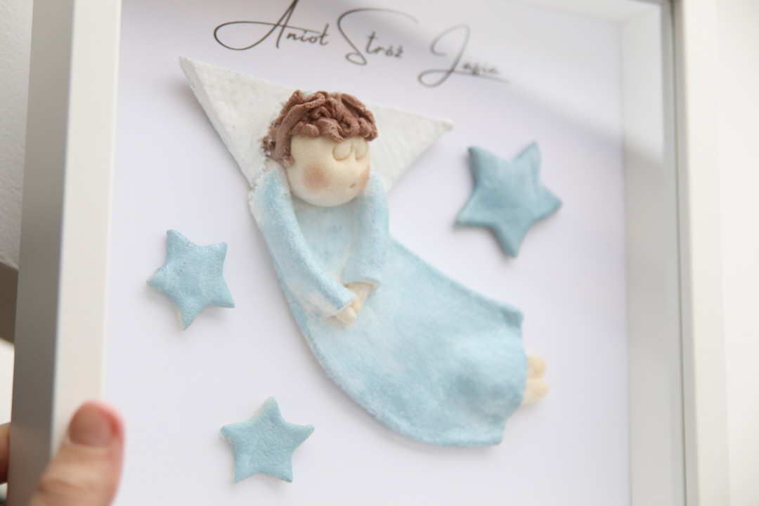 Opiekuńcza i troskliwa to bardzo osobista autorska kolekcja “Angel Star” której celem jest podarowanie prezentu wyjątkowego, unikatowego z głębszym przesłaniem. Jest to wyjątkowa kolekcja unikatowych figurek, wykonanych w 100% ręcznie. Same Anioły cechuje delikatność i wdzięk. Prostota formy i subtelna kolorystyka wyróżnia tą kolekcję. Autorski projekt tła z motywem gwiazd przybliża nas do nieba. Całość wykonania współgra z nowoczesnymi oraz klasycznymi dziecięcymi pokojami.